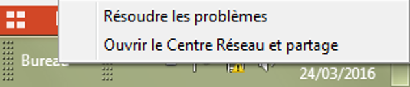 Dans votre barre des tâches Windows, cliquez avec le bouton droit sur l’icône Accès Internet. Sélectionnez « Résolution des problèmes ».